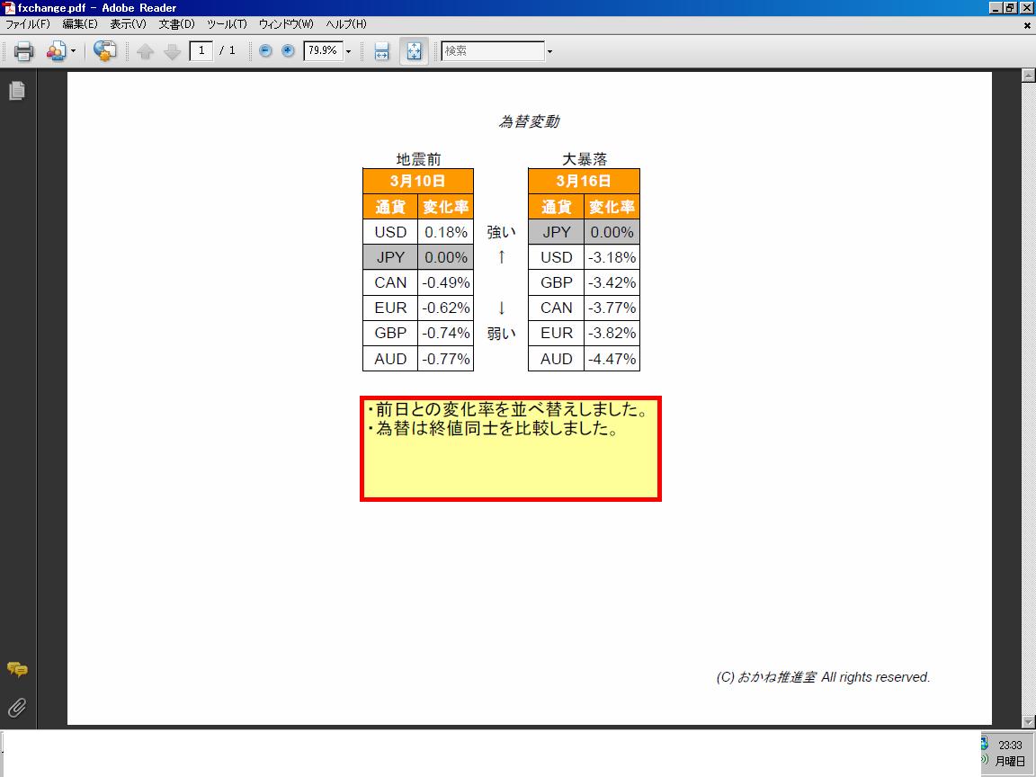 佐々木氏の教えに従って日経平均が大暴落した2011/3/17の為替相場を見ます。